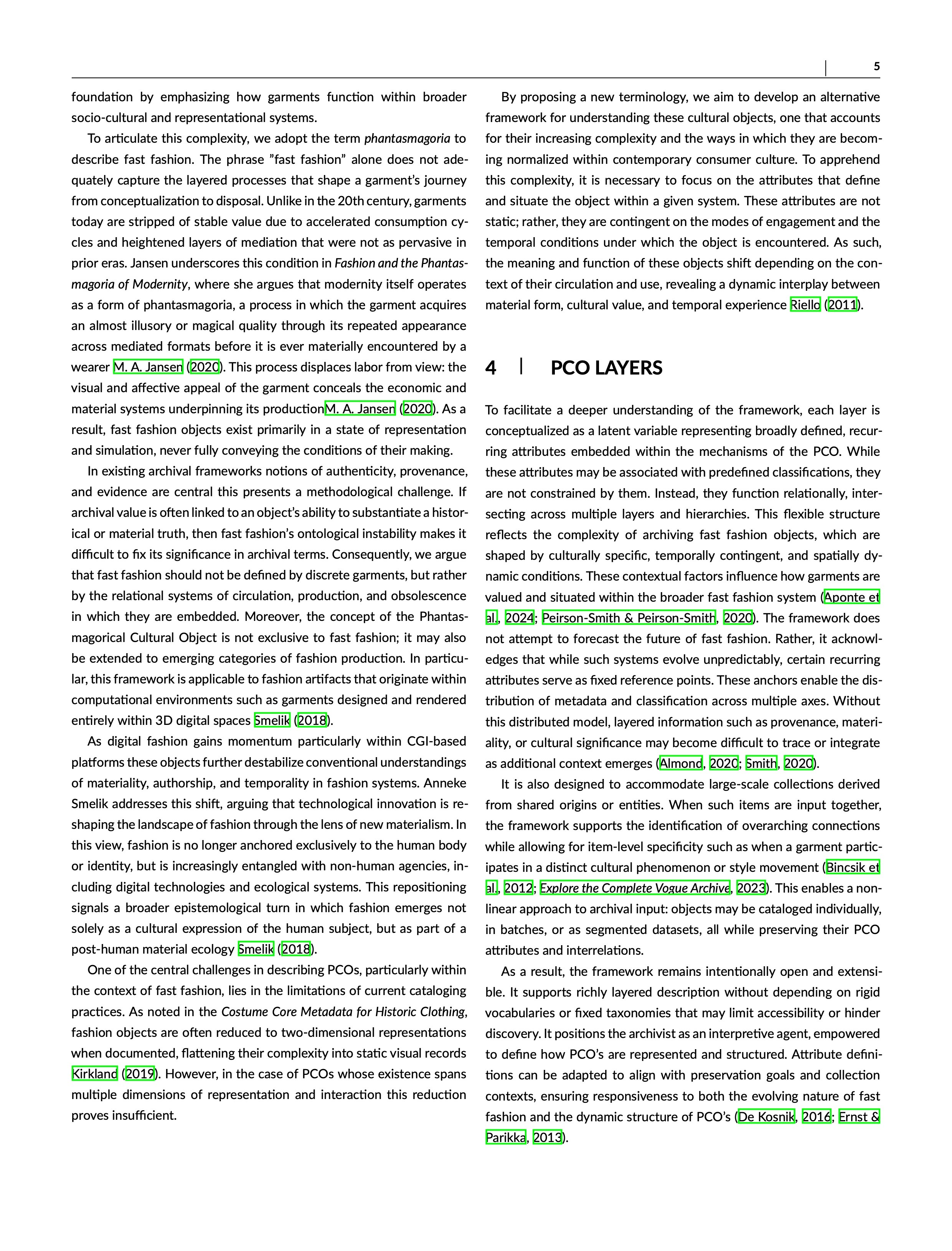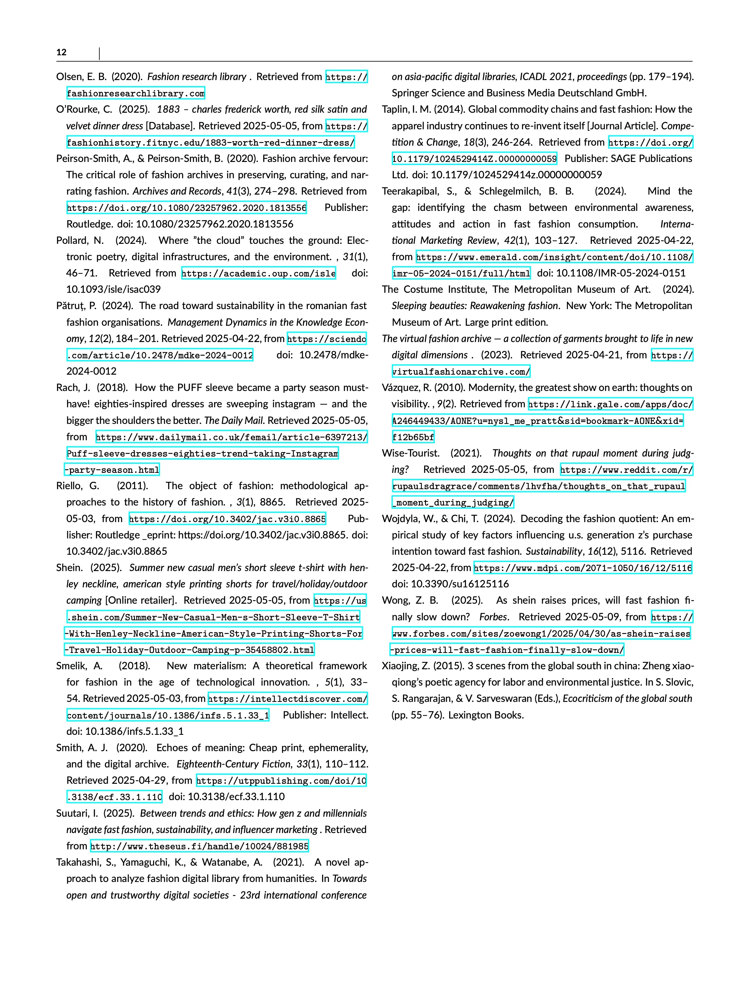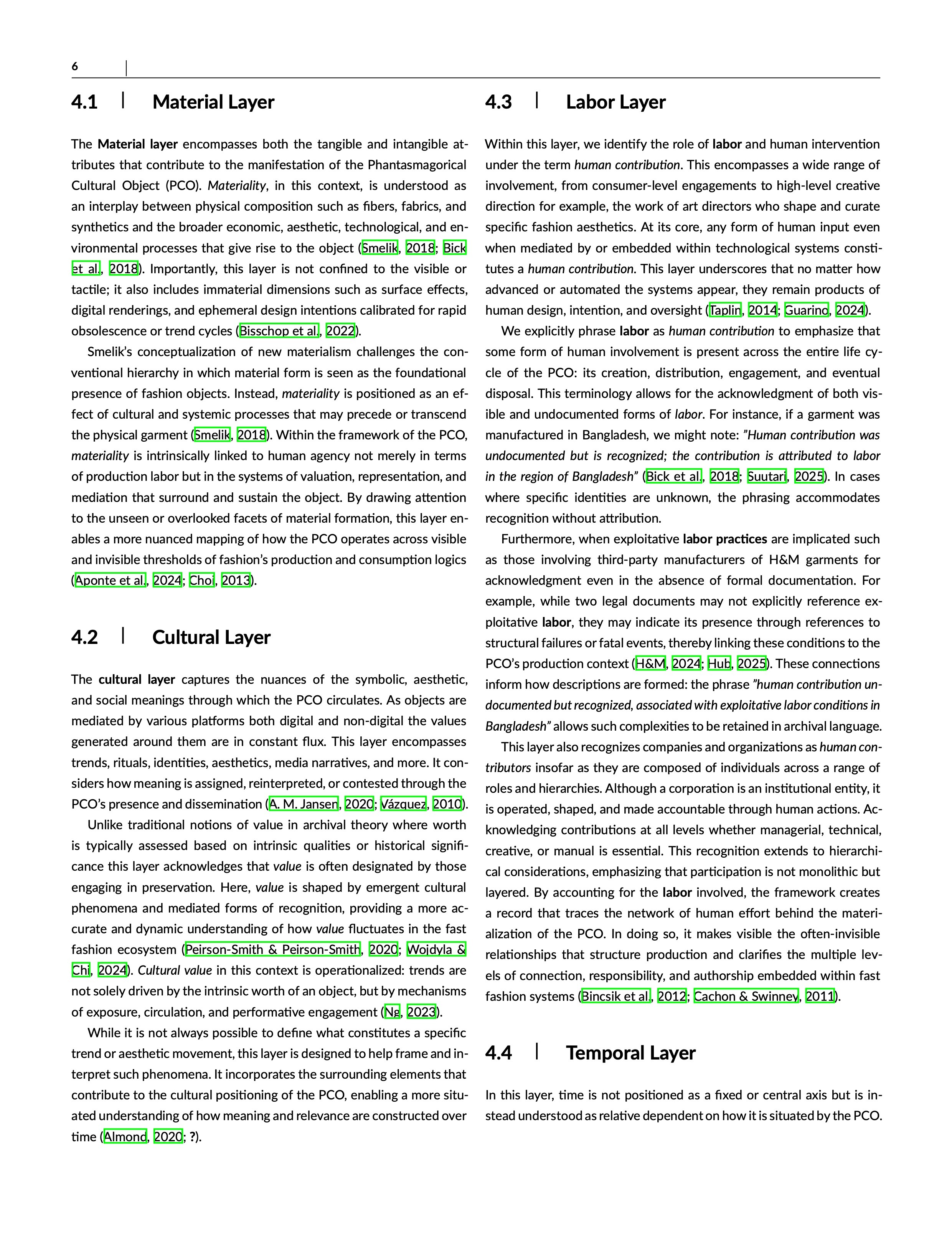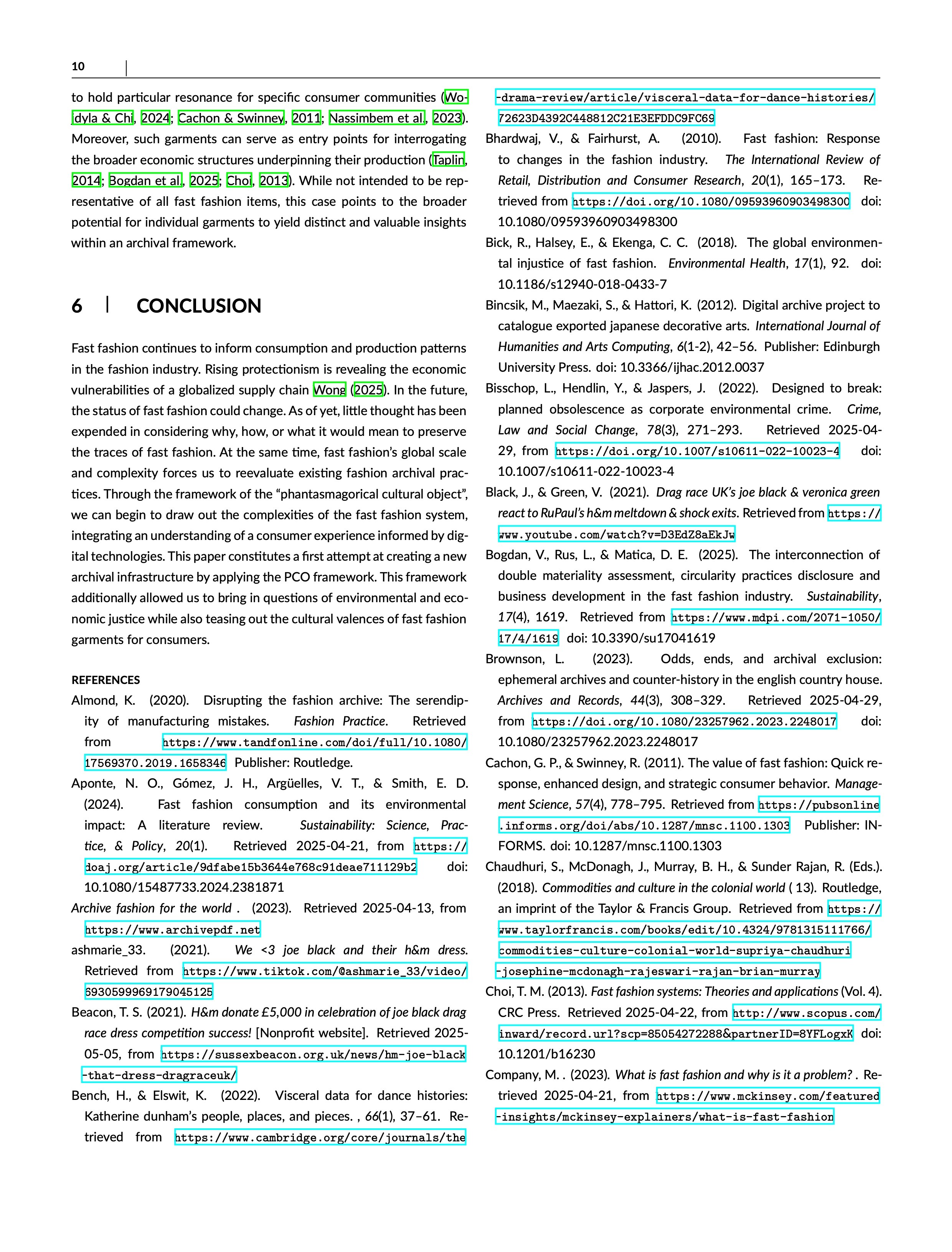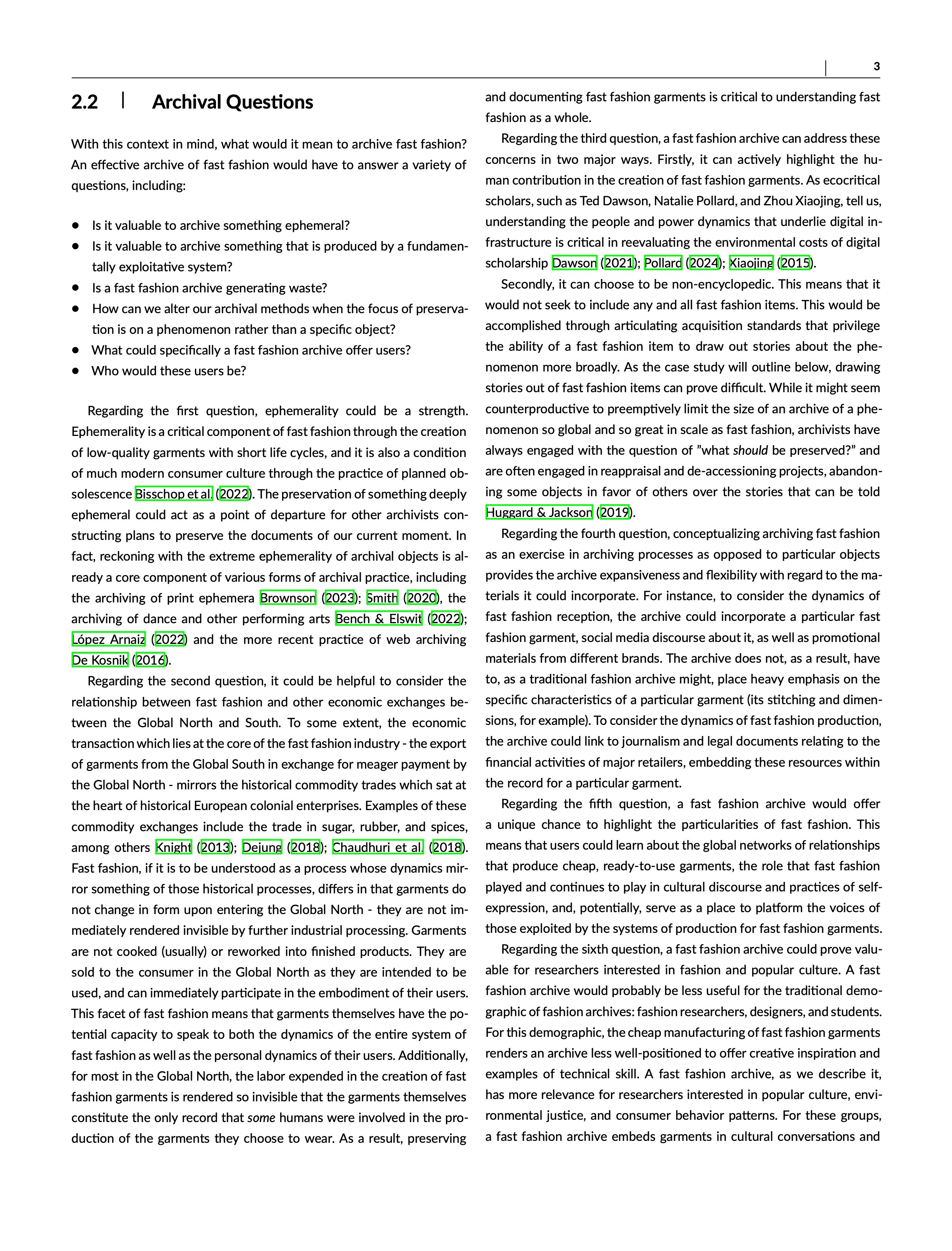 The idea of creating this human-oriented fast fashion framework originated from observing that traditional forms of provenance would be insufficient for an industry defined by volume and constant change. Because value in this context is difficult to define and not culturally fixed, preserving these objects becomes more complicated. The concept of the phantasmagorical object was designed not only to address this within fast fashion but also to offer a model applicable to other artifacts that resist stable categorization, especially given the sheer volume being produced across industries. The central question driving the framework is how one can preserve the digital dimension, the physical dimension, and other layers of an object that shape how we understand it and its value over time. Given the nature of excess in the fast fashion industry, we also wanted to consider how labor would be recognized within this framework, not archived per se, as well as the environmental impact. These are very complex issues and cannot be neatly defined, but the framework allows the complexity of the movement of fast-fashion objects and their stories to unfold in ways that highlight their effects on nature, people, and society.