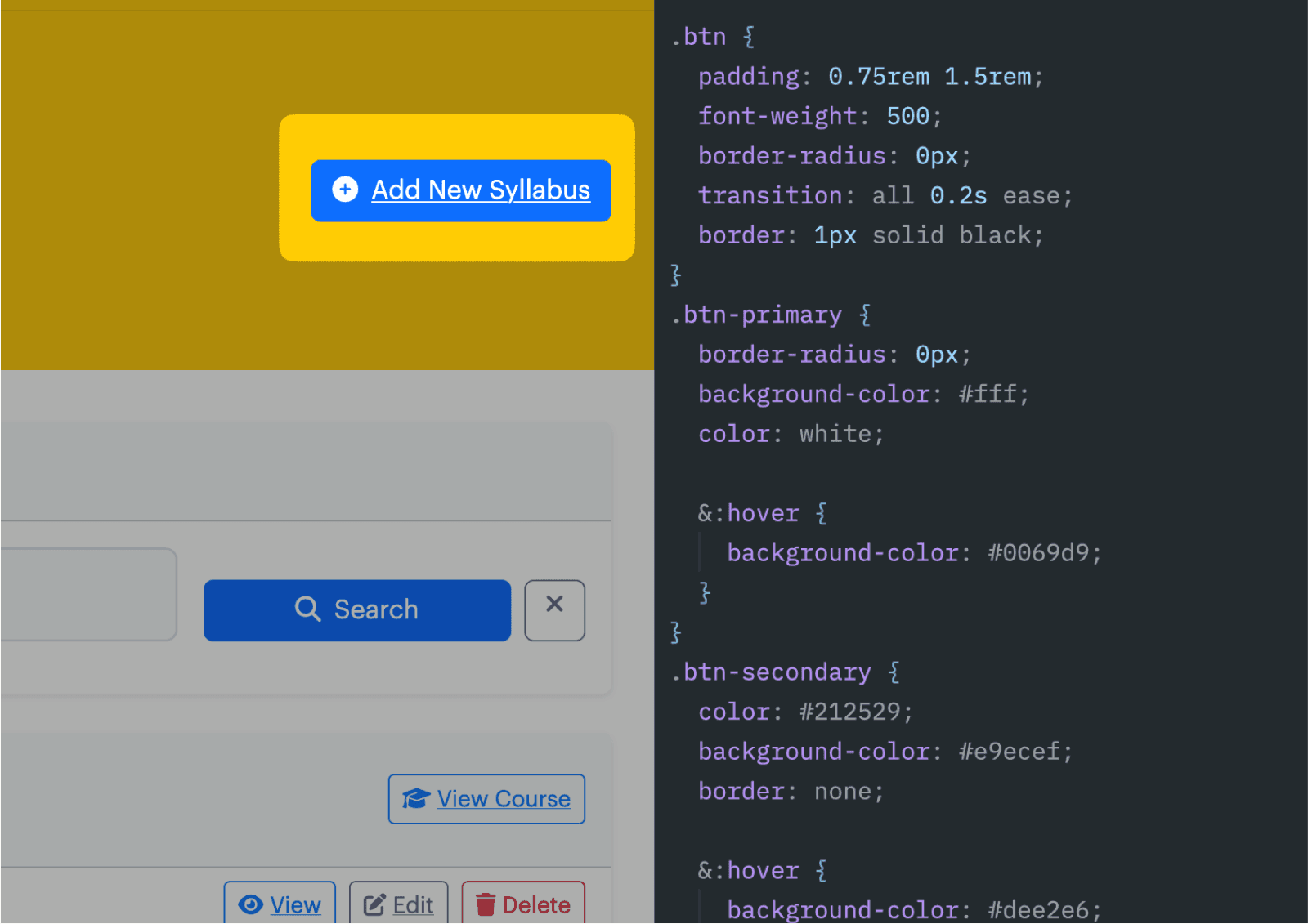 From there, I moved into designing the user interface, working through decisions about how the platform would surface connected materials, how a user would add or link specific resources, how it would handle existing entries, and how to display all syllabi across semesters under a single professor. Thinking through those interactions before fully connecting the database to the front-end code helped clarify both the schema design and the navigation logic, and each stage fed back into the others as usability considerations surfaced, adjustments that the initial plan hadn't anticipated.